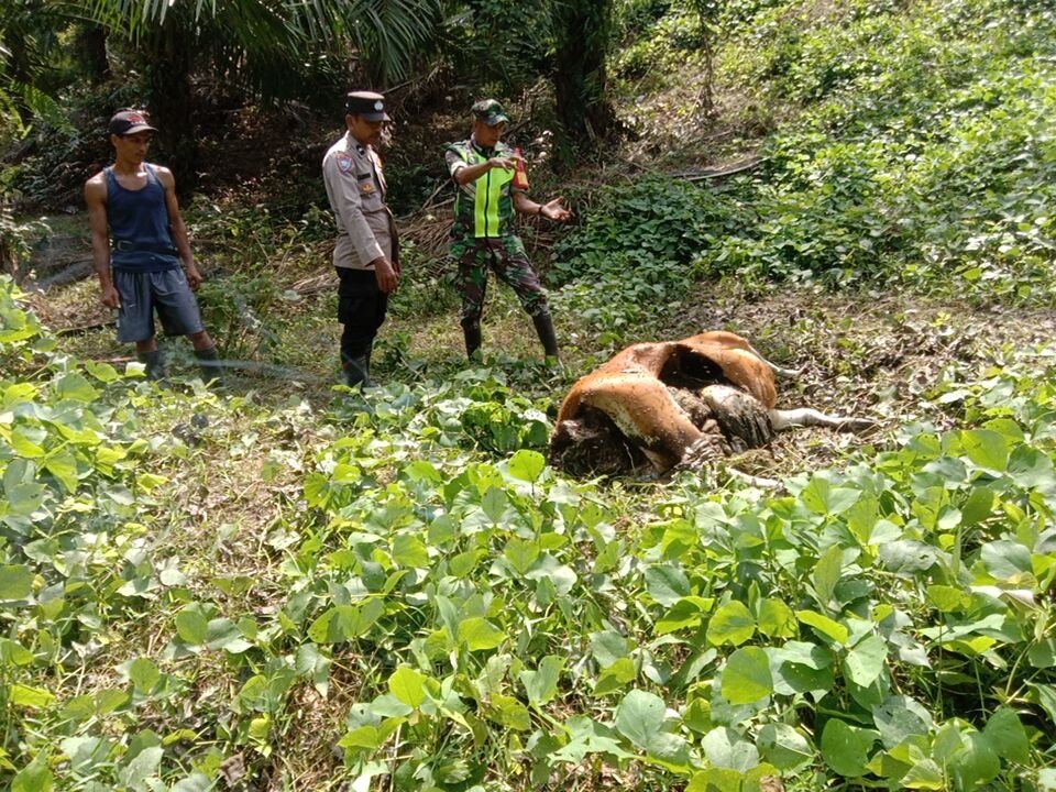 Seekor sapi betina milik Abu Hurairah, warga Dusun Buket Panyang, Desa Panton Rayeuk T, Kecamatan Banda Alam Kabupaten Aceh Timur ditemukan mati di area perkebunan sawit Afdelling I Julok Rayeuk Selatan pada hari Rabu, (28/05/2024) malam.
