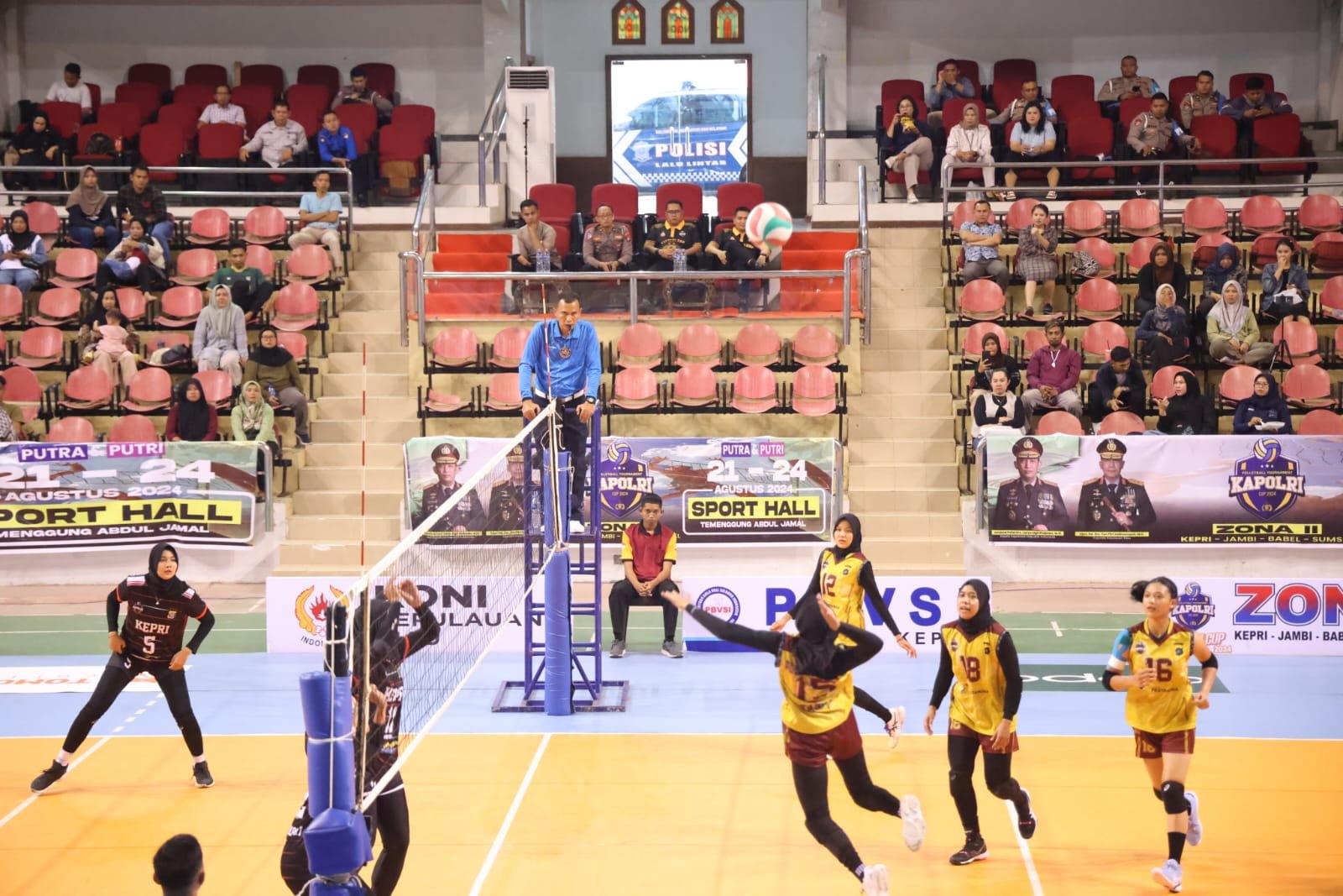 Tren positif kembali didapatkan oleh Tim Voli Putri Polda Bangka Belitung di laga kedua Turnamen Voli Kapolri Cup Zona II Sumatra di Gor Sport Hall Temenggung Abdul Jamal Kepri, Kamis (22/8/24) sore.