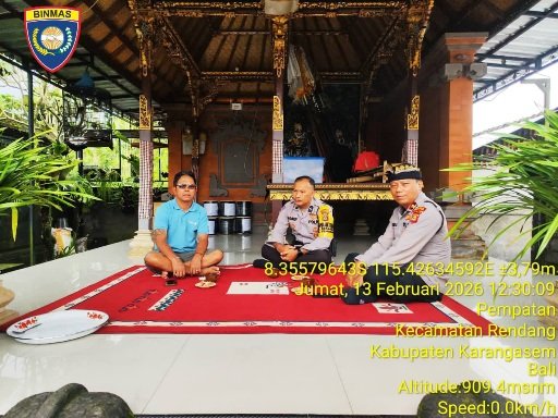 Kapolsek Rendang Kompol I Made Berata,SH,MH bersama Bhabinkamtibmas melaksanakan sambang dan patroli dialogis dengan masyarakat serta pantau situasi wilayah agar tetap kondusif, pada Jum’at (13/2/2026).
