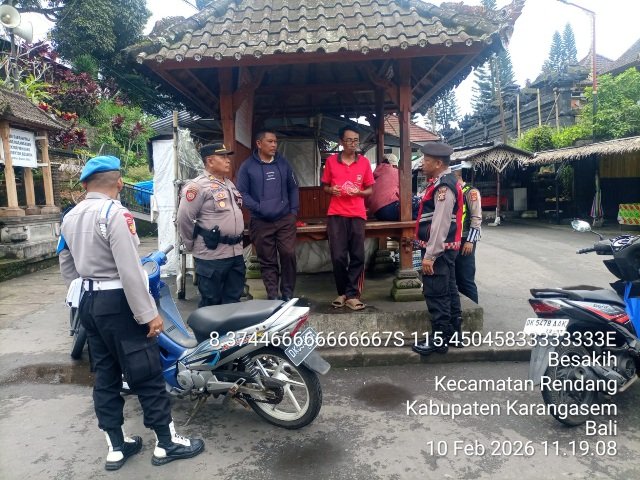 Personil Polsek Rendang melaksanakan patroli dialogis dengan masyarakat serta pantau situasi wilayah agar tetap kondusif. Pada Selasa (10/2/2026).