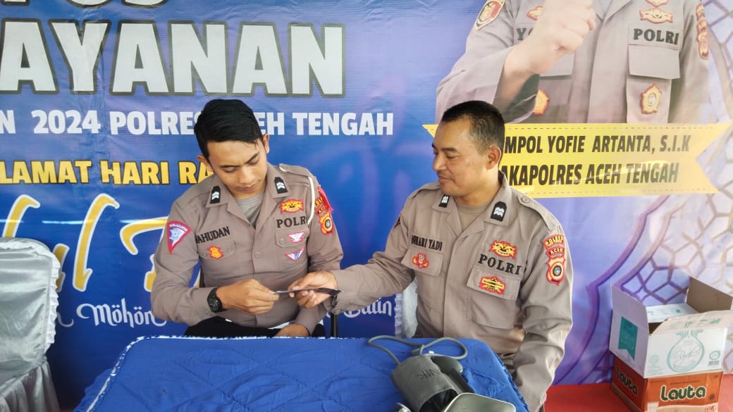 Si Dokkes Polres Aceh Tengah, Polda Aceh melakukan pemeriksaan kesehatan (Rikkes) kepada para petugas yang melakukan pengamanan di Pos Pengamanan dan Pos Pelayanan lebaran 2024.