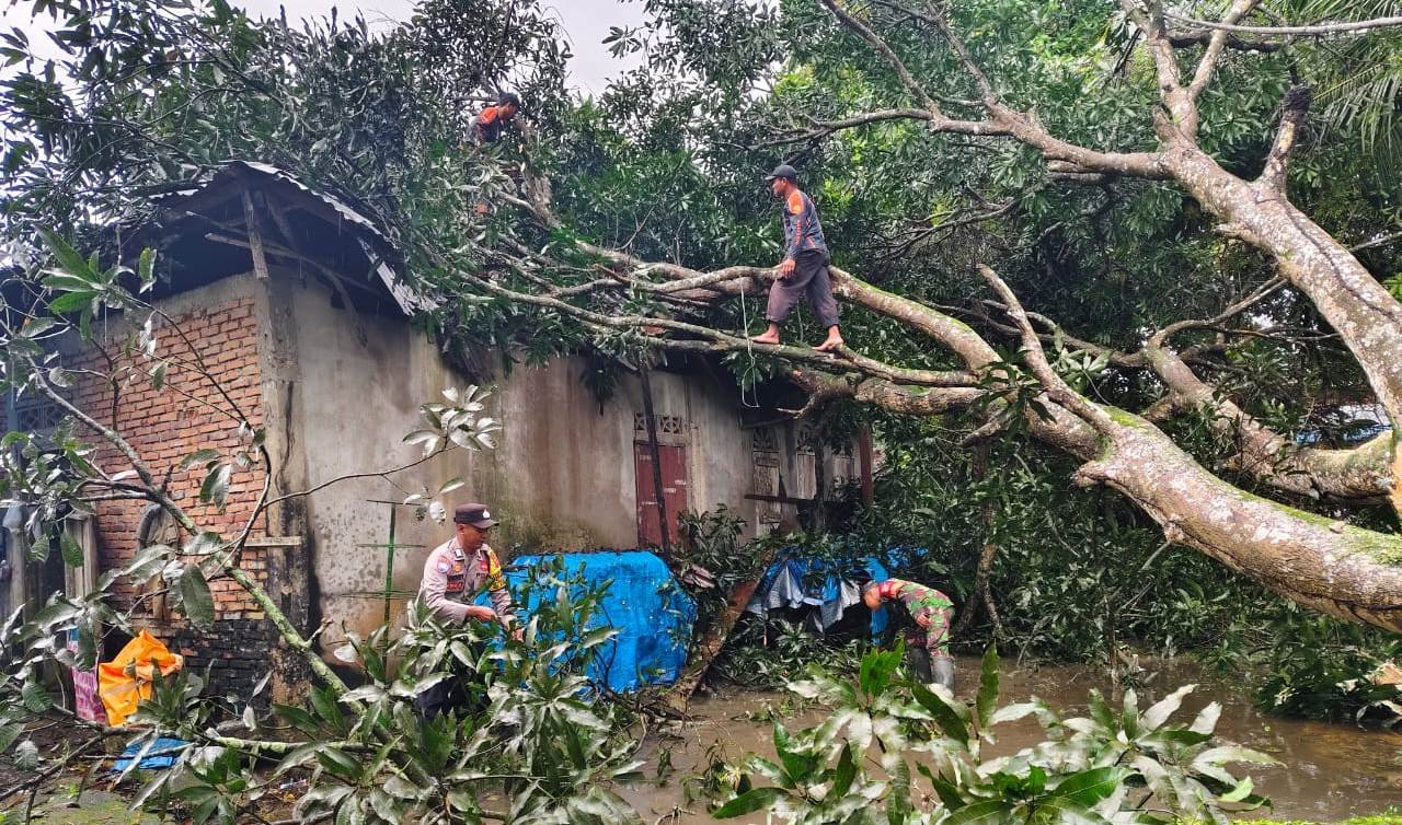 Kapolsek Darul Aman Iptu Syamsul Bahri, S.H. membenarkan bahwa anggotanya diturunkan ke lokasi rumah warga yang tertimpa pohon.