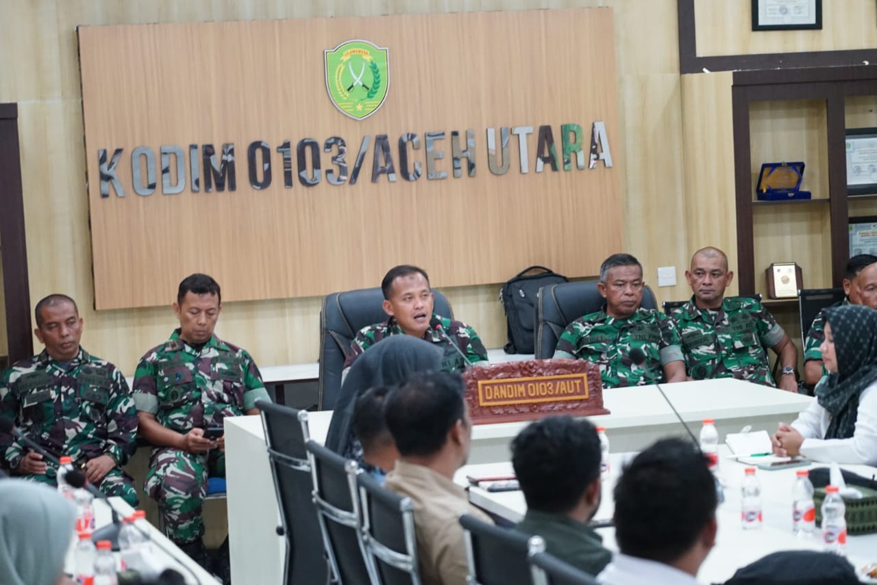 Komandan Kodim 0103/Aceh Utara, Letkol Arh Jamal Dani Arifin, S.Sos., M.M.D.S., mengadakan silaturrahmi sekaligus rapat dengan kepala SPPG dan pemilik dapur MBG di ruang rapat Kodim, Desa Gampong Jawa Lama, Jalan Iskandar Muda, Rabu (1/10/2025). Pertemuan ini membahas pengawasan program MBG (Makanan Bergizi) yang menjadi prioritas Presiden RI Prabowo Subianto.
