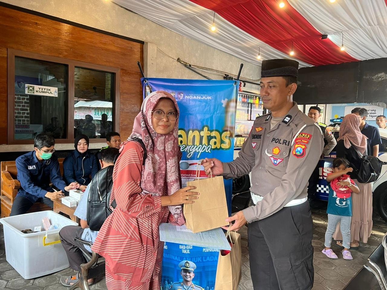 Pada kegiatan tersebut, Satlantas Polres Nganjuk memberikan pelayanan pendaftaran perpanjangan SIM kepada masyarakat yang melintas maupun yang datang langsung ke lokasi. Selain itu, masyarakat juga mendapatkan pemeriksaan kesehatan gratis yang dilaksanakan bersama Sidokkes Polres Nganjuk sebagai bagian dari persyaratan administrasi penerbitan SIM.