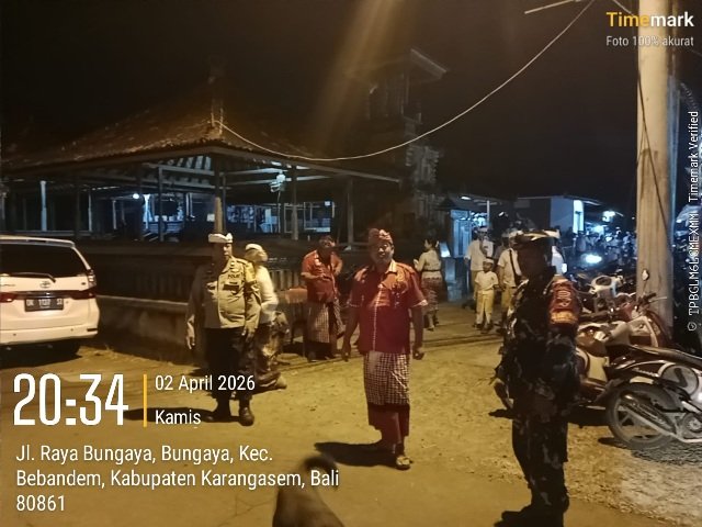 Kegiatan pengamanan yang dimulai sejak pukul 17.15 WITA ini menampilkan sinergitas yang solid antara Bhabinkamtibmas Desa Bungaya, Aiptu I Komang Gede, bersama Babinsa Sertu I Wayan Sukarata, serta dibantu oleh pengamanan swakarsa dari Pecalang Desa Adat Bungaya.