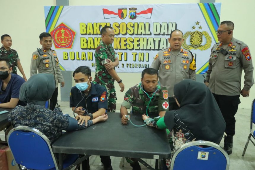 Mojokerto (Jatim) detikperistiwa.co.id | Polres Mojokerto bersama Kodim 0815/Mojokerto, menggelar bakti kesehatan pengobatan gratis untuk masyarakat di Desa Menanggal, Kecamatan Mojosari, Kabupaten Mojokerto, Jum’at (2/2/2024).