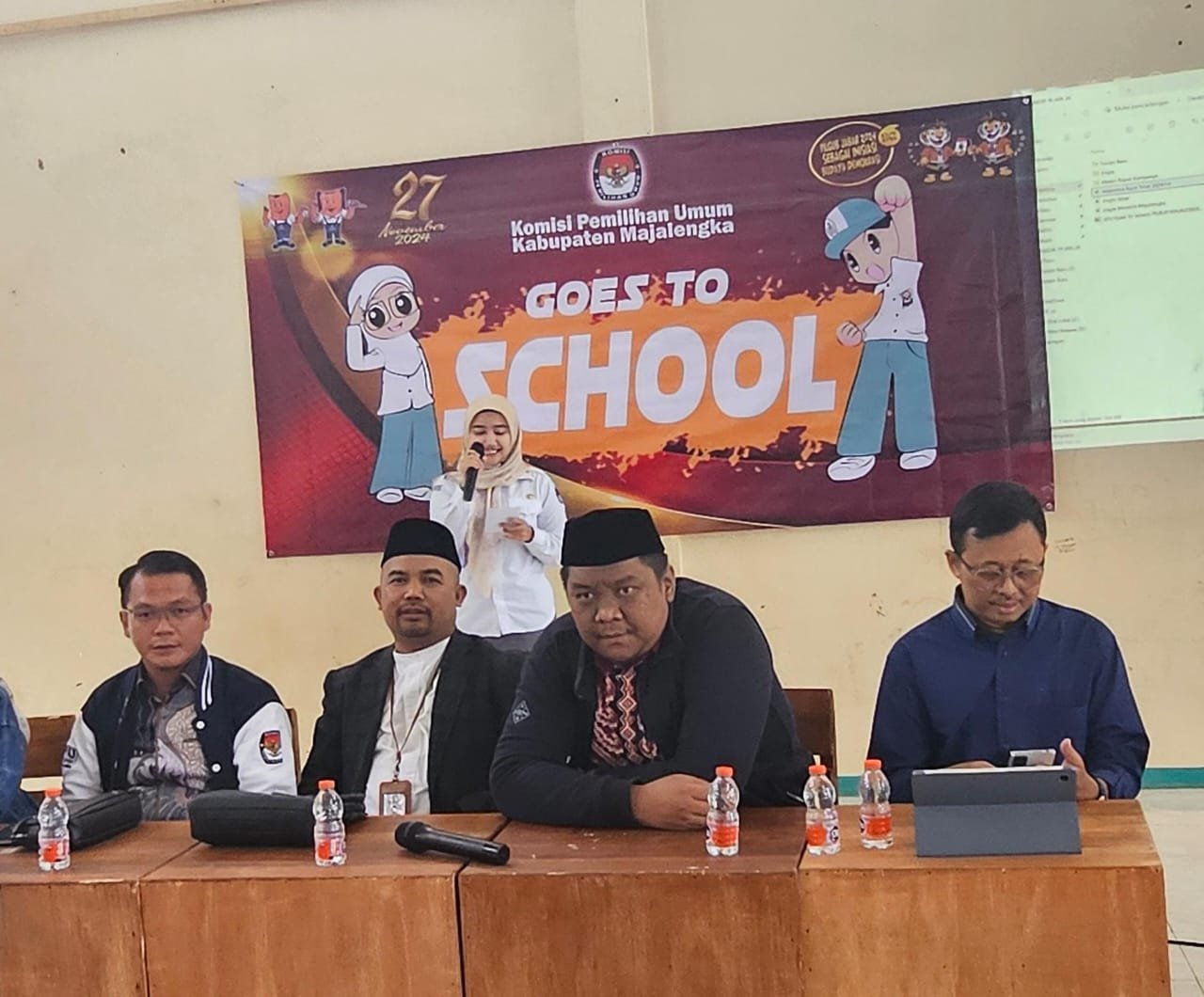 Komisi Pemilihan Umum (KPU) Kabupaten Majalengka melaksanakan kegiatan sosialisasi dan pendidikan pemilih bagi pemilih pemula di SMA IT Nurul Barokah Kancana Kecamatan Cikijing Kabupaten Majalengka Jabar pada Kamis (01/08/24).
