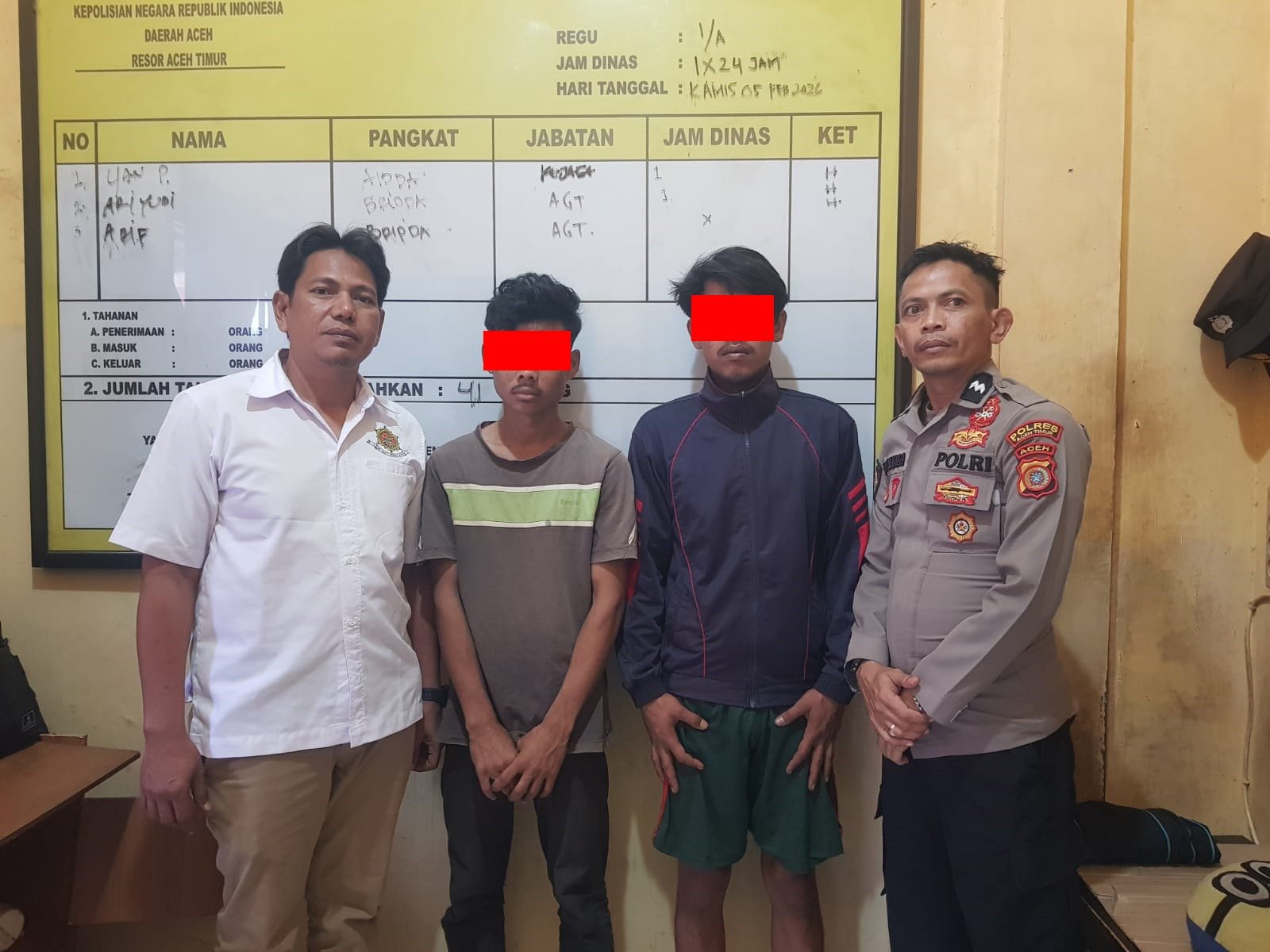 “Untuk saat ini kedua pelaku kami titipkan di ruang tahanan Polres Aceh Timur dan kasus ini sedang kami tangani lebih lanjut sesuai dengan ketentuan hukum yang berlaku,” sebut Kapolsek Peureulak AKP Syamsul Bahri, S.H.
