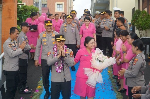 prosesi ini dipimpin langsung oleh Kapolres Karangasem yang baru, AKBP I Made Santika, S.H., S.I.K., M.I.K., dengan melibatkan seluruh personel Polres Karangasem.