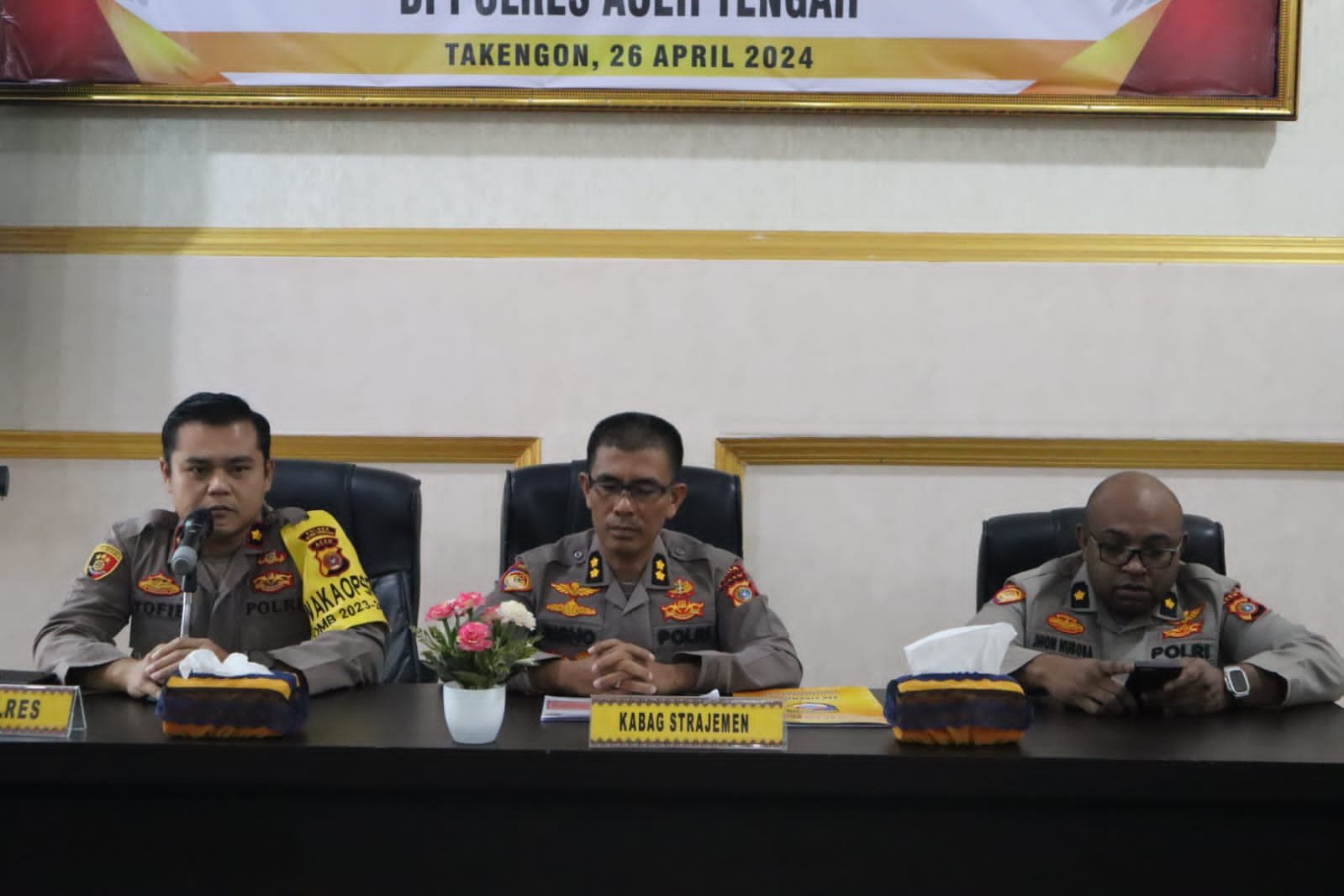 Kapolres Aceh Tengah AKBP Dody Indra Eka Putra, diwakili Wakapolres Kompol Yofie Artanta, mengucapkan selamat datang kepada Kabag Strajemen dan Tim, Semoga Supervisi ini diharapkan kita mendapatkan masukan dari Tim Supervisi dan dapat dijadikan bahan acuan untuk peningkatan kinerja Polres Aceh Tengah.