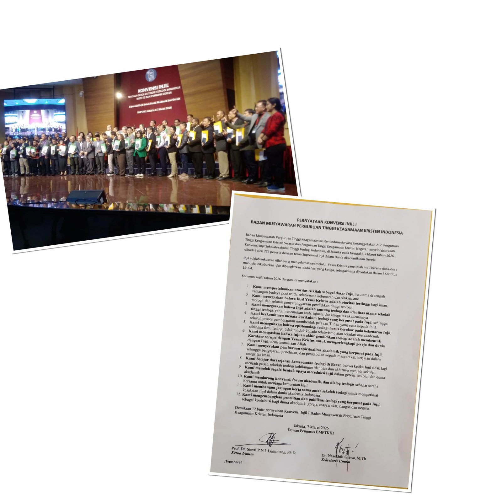 Pernyataan tersebut menegaskan pentingnya mempertahankan otoritas Alkitab sebagai dasar Injil serta menjadikan Injil Yesus Kristus sebagai pusat pendidikan teologi dan pelayanan gereja.