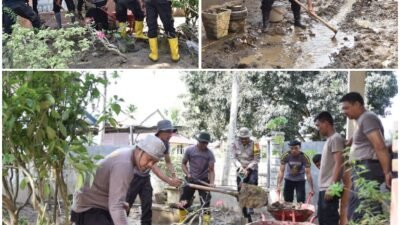 Bireuen | detikperistiwa.co.id Kepolisian Resor Bireuen bersama jajaran Polsek melaksanakan gotong royong pemulihan pascabencana banjir…