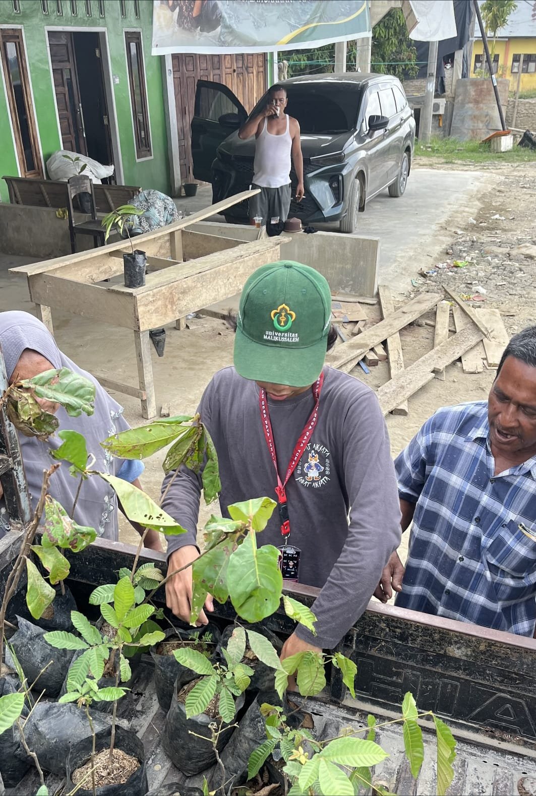 Sebanyak 100 bibit pohon terdiri dari matoa, jambu Jamaika, dan ketapang ditanam di sejumlah titik strategis, mulai dari halaman rumah warga, halaman sekolah, hingga area depan kuburan desa. Penanaman dilakukan sebagai langkah preventif untuk mencegah banjir berulang serta mengurangi abrasi tanah yang berlebihan.