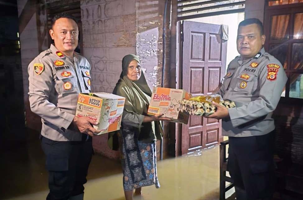 Menanggapi kondisi yang demikian, Kapolsek Madat Iptu Denny Zahryanto Situmorang, S.E. bersama anggotanya pada Minggu, (23/11/2025) malam mendatangi lokasi untuk menyerahkan bantuan kepada warga yang terdampak banjir.