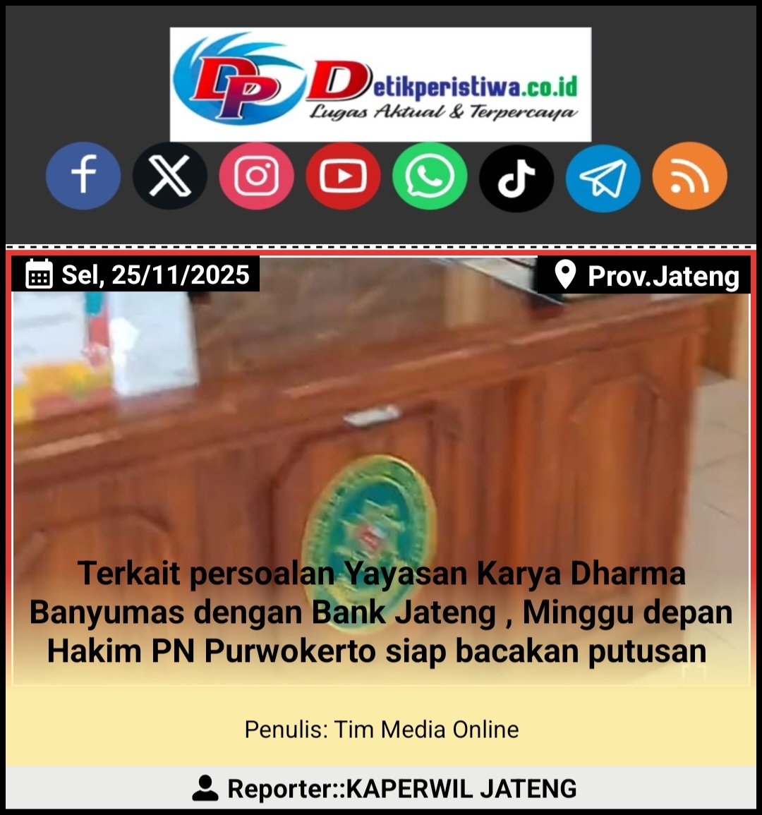 Terkait persoalan Yayasan Karya Dharma Banyumas dengan Bank Jateng , Minggu depan Hakim PN Purwokerto siap bacakan putusan