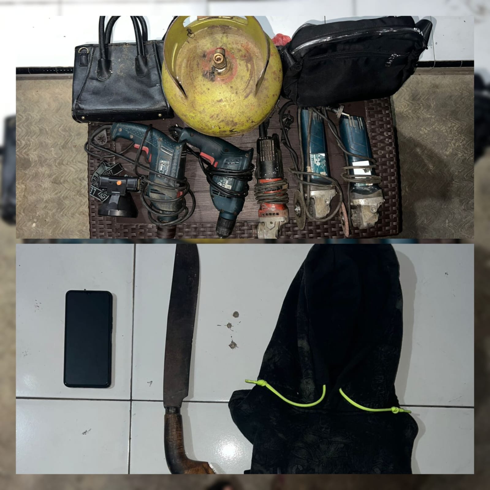 Sementara itu, barang bukti yang diamankan dari tangan para pelaku antara lain 1 unit sepeda motor, 1 bilah parang, 3 unit Gerinda, 2 unit Bor, 1 buah tabung gas LPG 3 kg, 2 buah tas.”ptysht