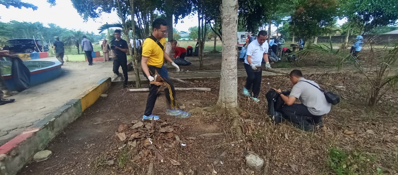 Tiga Pilar Bersatu, Polsek Mesuji Timur Gelar Gotong Royong Bersih-bersih Alun-Alun Marga Jadi