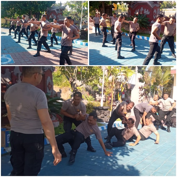 Dalam giat tersebut, Kapolsek melatih beberapa teknik beladiri Polri kepada personel, mulai dari gerakan dasar tangkisan, pukulan, dan tendangan, hingga teknik membawa tahanan dengan aman sesuai prosedur.