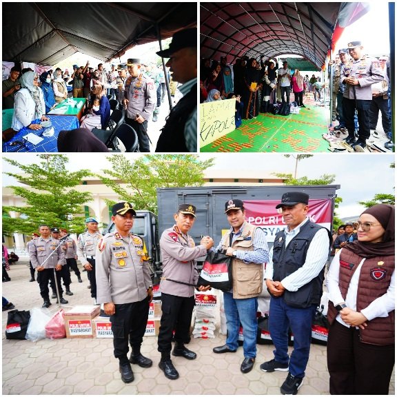 Selanjutnya, dalam kegiatan tersebut juga dilakukan penyerahan bantuan, yaitu 300 paket sembako, 300 pcs selimut, delapan dus obat-obatan, dan 150 pcs mainan anak.