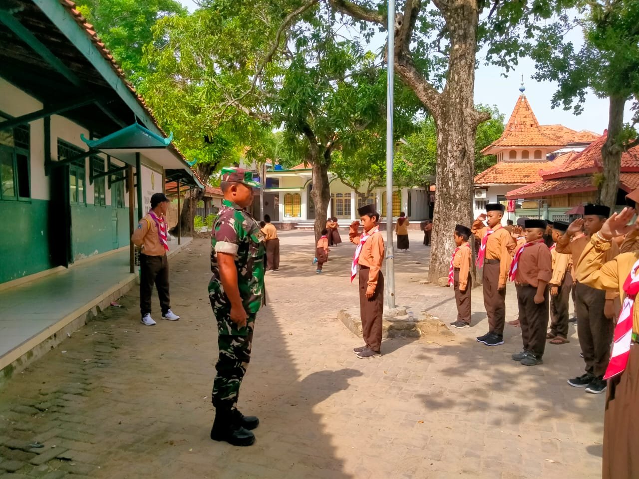 Serka Irpani Selaku Babinsa mengajarkan pentingnya kedisiplinan dalam kehidupan sehari-hari, baik di sekolah maupun di luar sekolah, Pengenalan Pancasila dan bela negara.