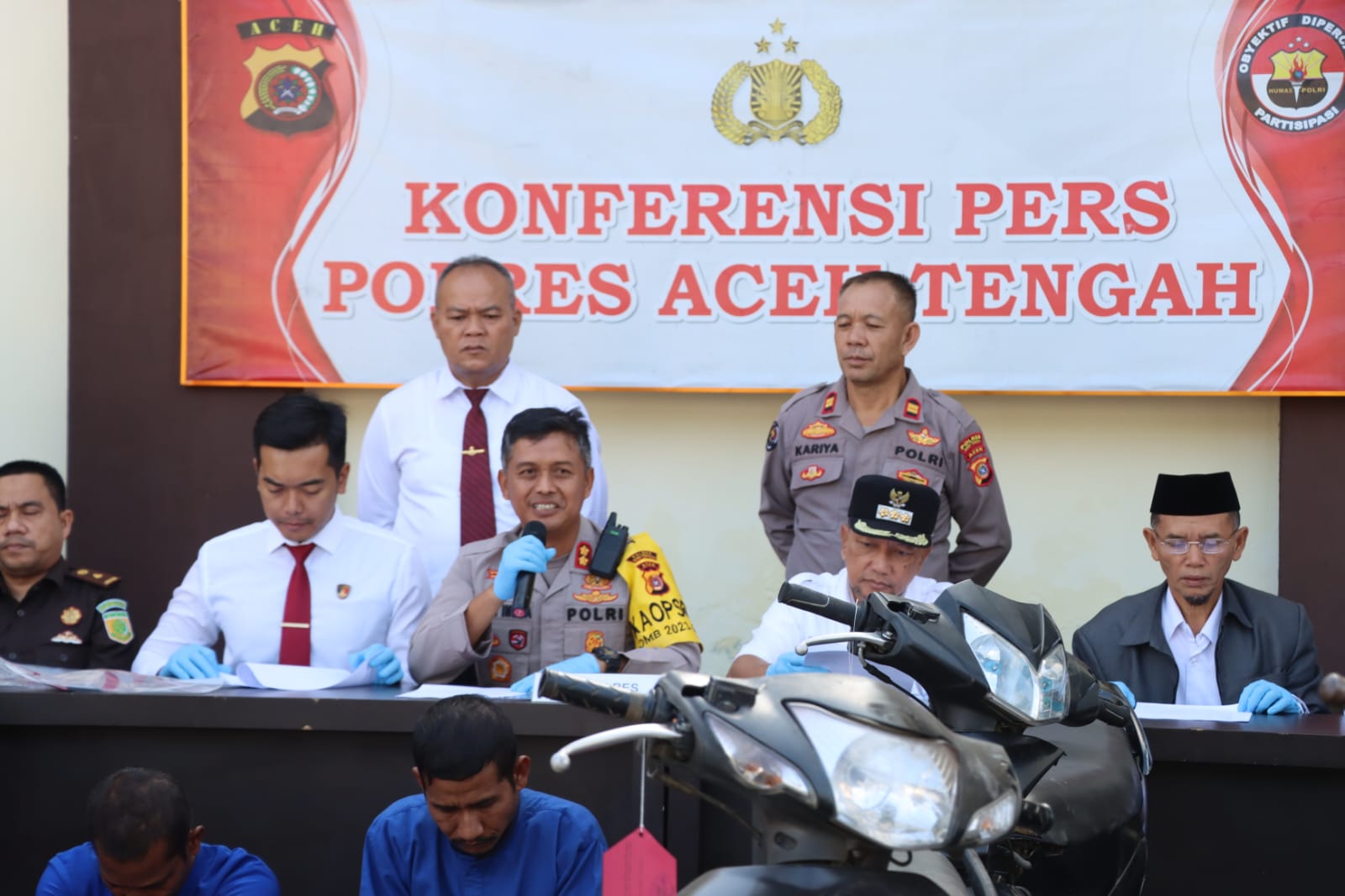 Konferensi pers itu di pimpin oleh Kapolres Aceh Tengah AKBP Dody Indra Eka Putra, di dampingi Kasat Reskrim Iptu Andika Ardiansyah, juga hadir dalam kesempatan Konferensi pers tersebut Penjabat Bupati Aceh Tengah, Kepala Kantor Kemenag, Ketua MPU, Perwakilan Pengadilan dan Kejaksaan.