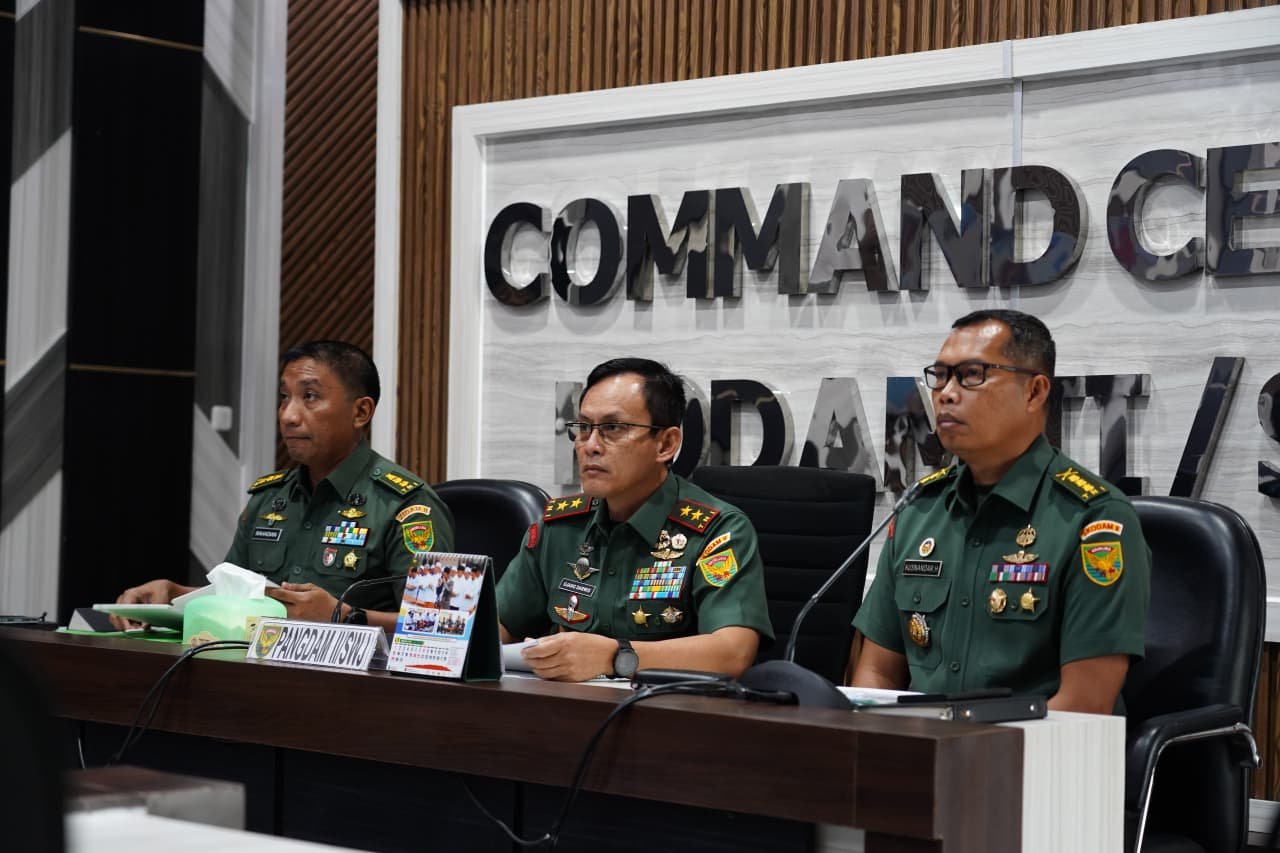 Pangdam II/Sriwijaya Mayjen TNI Ujang Darwis, M.D.A., mengikuti rapat evaluasi lanjutan terkait Percepatan Pembangunan Koperasi Desa Kelurahan Merah Putih (KDKMP) secara virtual dari Gedung Puskodalopsdam II/Sriwijaya, Palembang, Selasa (24/02/2026). Kegiatan ini dipimpin langsung oleh Wakil Panglima TNI, Jenderal TNI Tandyo Budi Revita, guna memastikan program pemberdayaan ekonomi masyarakat di tingkat desa berjalan sesuai target.
