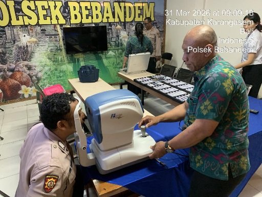 Guna menunjang performa dan profesionalisme personel kepolisian dalam menjalankan tugas operasional di lapangan, jajaran Polsek Bebandem menjalin kerja sama kesehatan dengan Optik Krishna. Kegiatan yang berfokus pada pemeriksaan mata gratis ini dilaksanakan di Aula Mako Polsek Bebandem, Karangasem. Pada Senin, (30/03/2026)