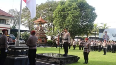 Waka Polres Tabanan Kompol I Gede Made Surya Atmaja Putra ,S.,Sos memimpin upacara memperingati hari Kesadaran Nasional di Rangkai dengan Konsolidasi Ops. Ketupat Agung 2024 dan KRYD, bertempat di Lapangan Apel Polres Tabanan, Rabu ( 17/4/2024 )