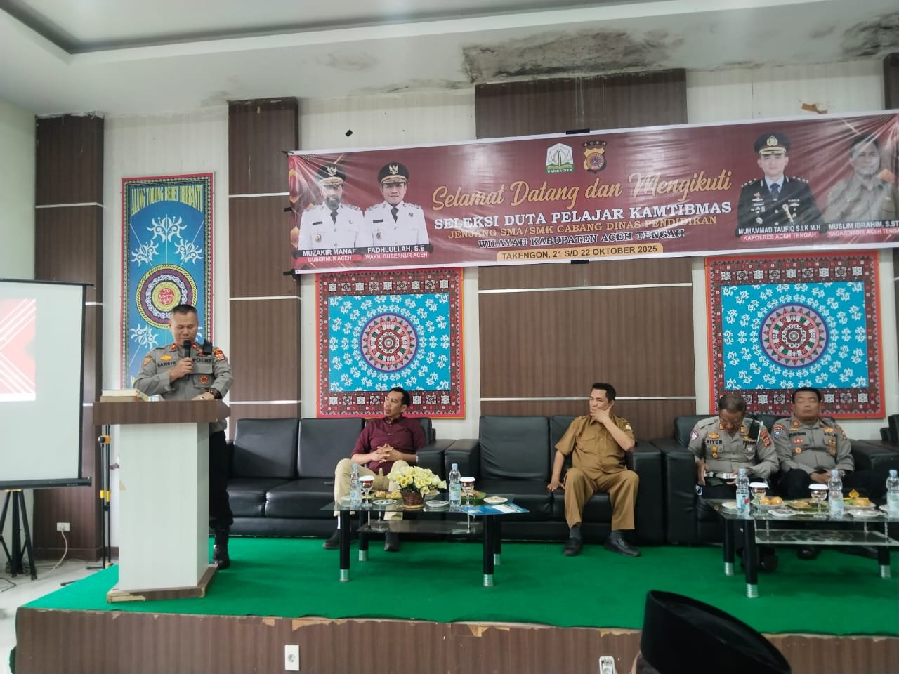 Kapolres Aceh Tengah AKBP Muhamad Taufiq, S.I.K., M.H., diwakili Wakapolres Kompol Samsir, S.H., secara resmi membuka Seleksi Duta Pelajar Keamanan dan Ketertiban Masyarakat (Kamtibmas) tahun 2025.