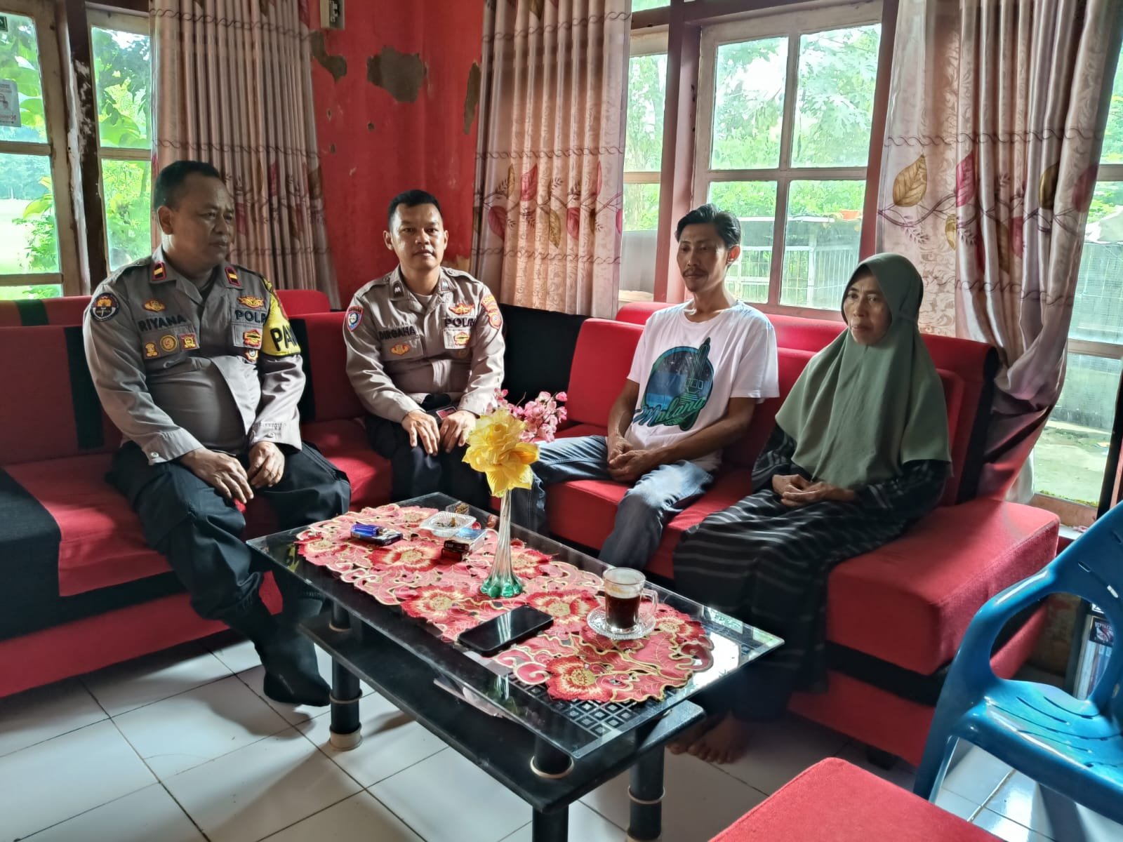Kedatangan Kasubsi PIDM Siehumas Polres Majalengka bersama Kanit Binmas Polsek Rajagaluh AIPDA Dirgaha Maludi bersama Bhabinkamtibmas Briptu Aditya disambut langsung oleh keluarga Almarhum juga beberapa Awak Media Majalengka di rumah duka bertempat di Blok Jumat RT 02/04 Desa Cisetu Kecamatan Rajagaluh Kabupaten Majalengka.