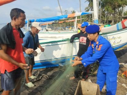 Wujud Kepedulian kepada Warga Nelayan  Kasat Polairud Turun Tangan Bantu Proses Melepas Ikan dari Jaring