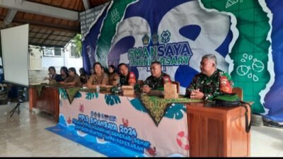 Guna membangun mental dan karakter bangsa terhadap kader-kader/generasi penerus, Personil Koramil 1617-03/Melaya Kodim 1617/Jembrana Serka I Kadek Wirawanta bersama Sertu I Gede Sujana dan Sertu I Kadek Sukarta, memberikan latihan Peraturan Baris Berbaris (PBB) kepada seluruh siswa siswi di SMA Negeri 1 Melaya, peserta Masa Pengenalan Lingkungan Sekolah (MPLS) bertempat di Banjar Pangkung Dedari, Desa Melaya, Kecamatan Melaya, Kabupaten Jembrana. Selasa (16/07/24).