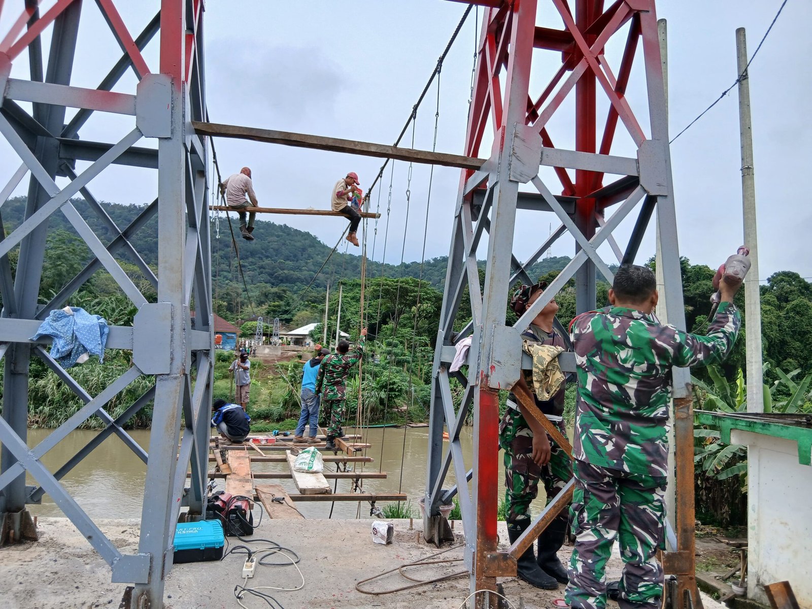 Dandim 0403/OKU melalui Kasdim 0403/OKU Mayor Inf Sariyo, menjelaskan bahwa pembangunan jembatan gantung ini adalah implementasi program pemerintah melalui sinergi dengan TNI.