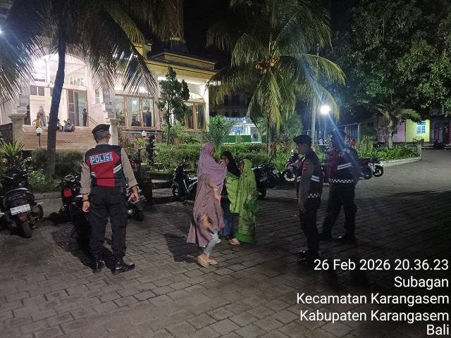 Dalam rangka menjaga situasi keamanan dan ketertiban masyarakat (Harkamtibmas) selama Bulan Suci Ramadhan 1447 H, Sat Samapta Polres Karangasem melaksanakan kegiatan atensi dan patroli pengamanan sholat tarawih, Kamis (26/2/2026) malam.