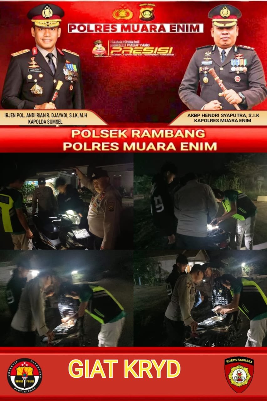 Kapolres Muara Enim AKBP Hendri Syaputra, SIK, melalui Kapolsek Rambang IPTU Zulkarnain Afianata, ST, M.Si, MH, menyampaikan bahwa kegiatan KRYD merupakan langkah preventif kepolisian untuk menciptakan rasa aman di tengah masyarakat.