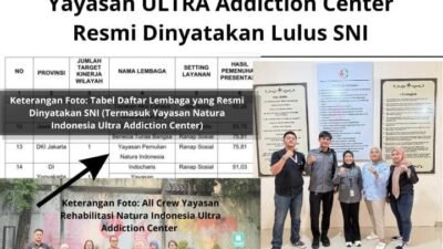 Jakarta (GMOCT) – Kabar membanggakan datang dari Yayasan ULTRA Addiction Center. Lembaga rehabilitasi ini resmi dinyatakan lulus Standar Nasional Indonesia (SNI) setelah melalui rangkaian proses penilaian dan verifikasi yang ketat.